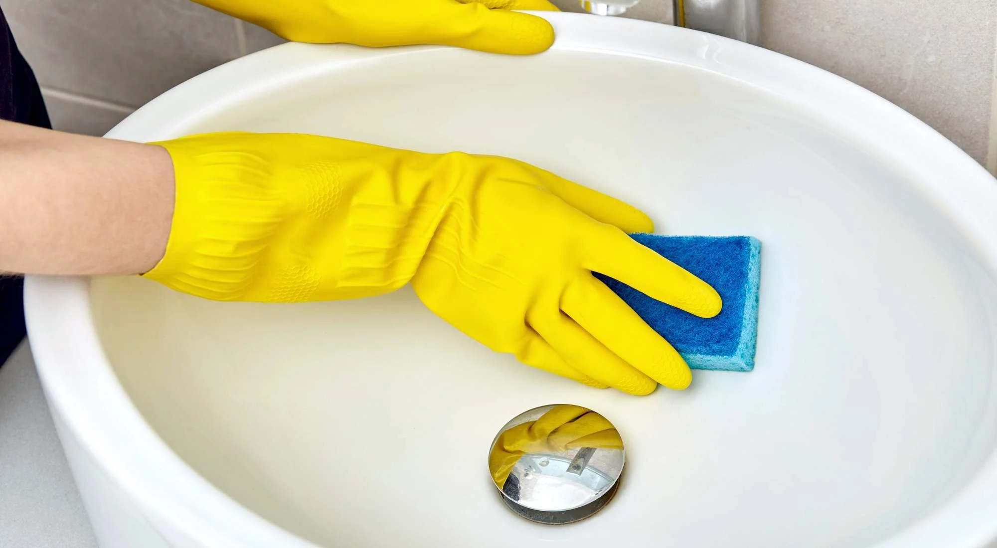 Residual water from washing hands and faces, brushing teeth, and multiple hair and hygiene products are whisked away down the sink drain numerous times a day, leaving the basin wet and exposed to bacteria — which will certainly accumulate over time.